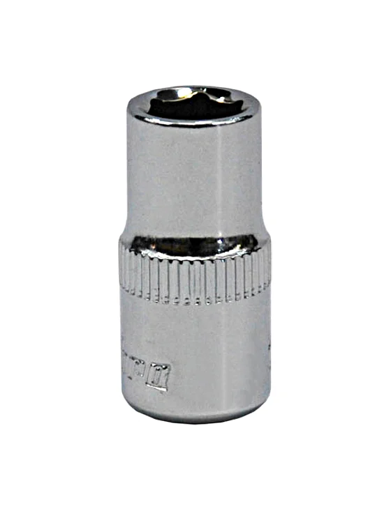 Торцевая головка 112011 Ombra применяется с гайковертами. Приспособление используется для откручивания различного крепежа, к которому относятся гайки, болты и т.д. Оснастка просто незаменима в случаях, когда крепеж расположен в труднодосягаемом месте, где работа с гаечными ключами не удобна. Торцевые головки подходят для ударных нагрузок и обладают лучшим крутящим моментом по отношению к резьбе, чем другой подобный инструмент. Материал оснастки хром-ванадиевая сталь, что обеспечивает ее высокую прочность и стойкость к нагрузкам и механическим воздействиям. Еще одной особенностью торцевой головки является хромоникелевое покрытие, за счет которого с поверхности оснастки легко удаляются все видимые загрязнения и она не подвергается коррозии.