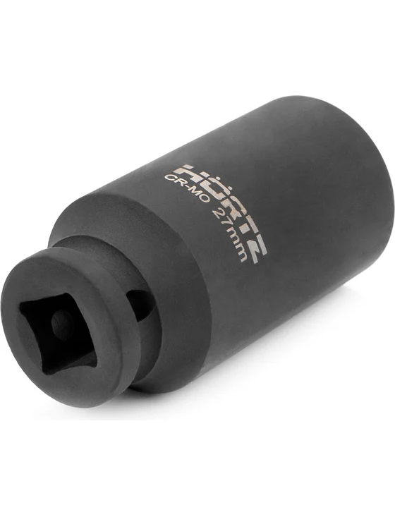 Головка торцевая шестигранная сменная ударная 27 мм 1/2" HORTZ - активно применяется в промышленности для быстрого и надежного монтажа и демонтажа крепежных элементов на различном оборудовании, машинах и конструкциях. Изготовлена из стали повышенной прочности и покрыта черной антикоррозийной краской.