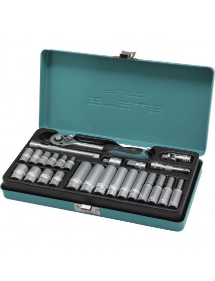 Набор торцевых головок с трещоткой STELS 1/4", 26 предметов 13574 подойдет для работы с шестигранным крепежом. Набор инструмента уложен в прочный металлический кейс. Есть дополнительная оснастка для удобного вращения крепежа.