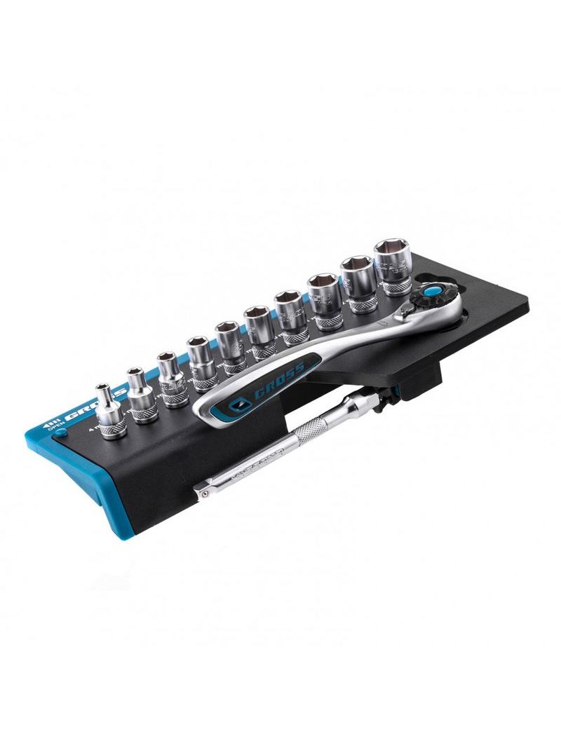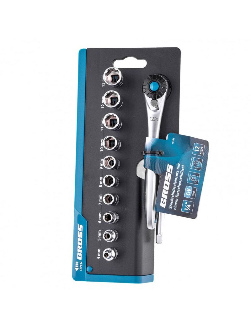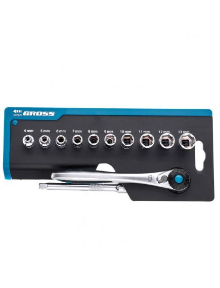 Набор торцевых головок 1/4" трещотка 120 зубьев 12 предметов GROSS 14141