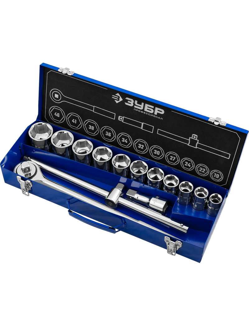 Набор торцевых головок ЗУБР 27660-H14 подойдет для сложных работ с подвеской автомобиля, крупногабаритной техникой и оборудованием. Комплект уложен в прочный металлический кейс. На крышке продублированы размеры инструмента для удобства поиска.