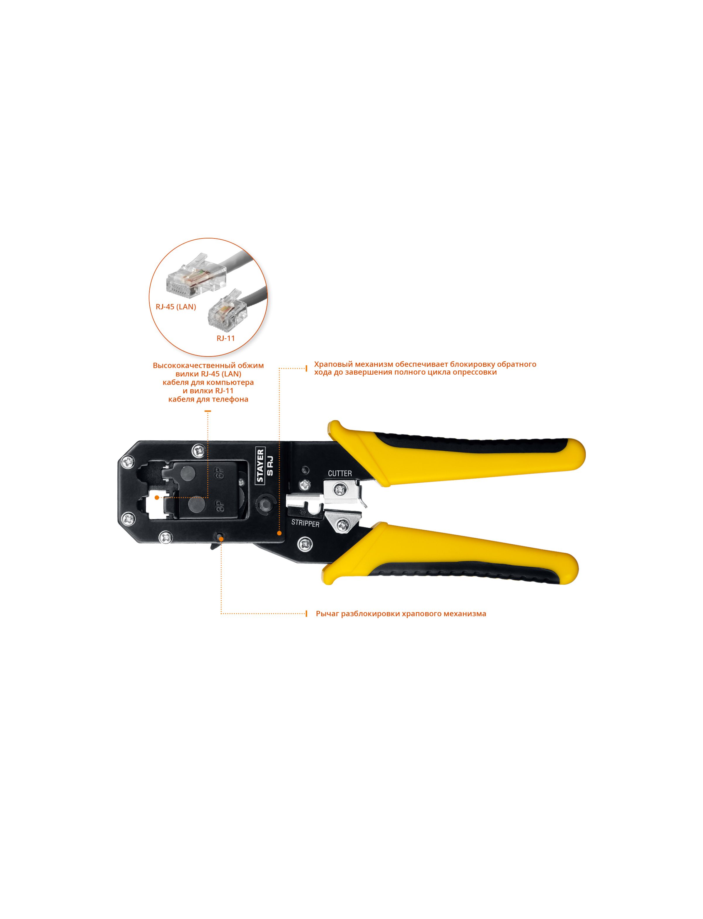 Кримпер универсальный STAYER Professional RJ45, RJ11/RJ12 22652