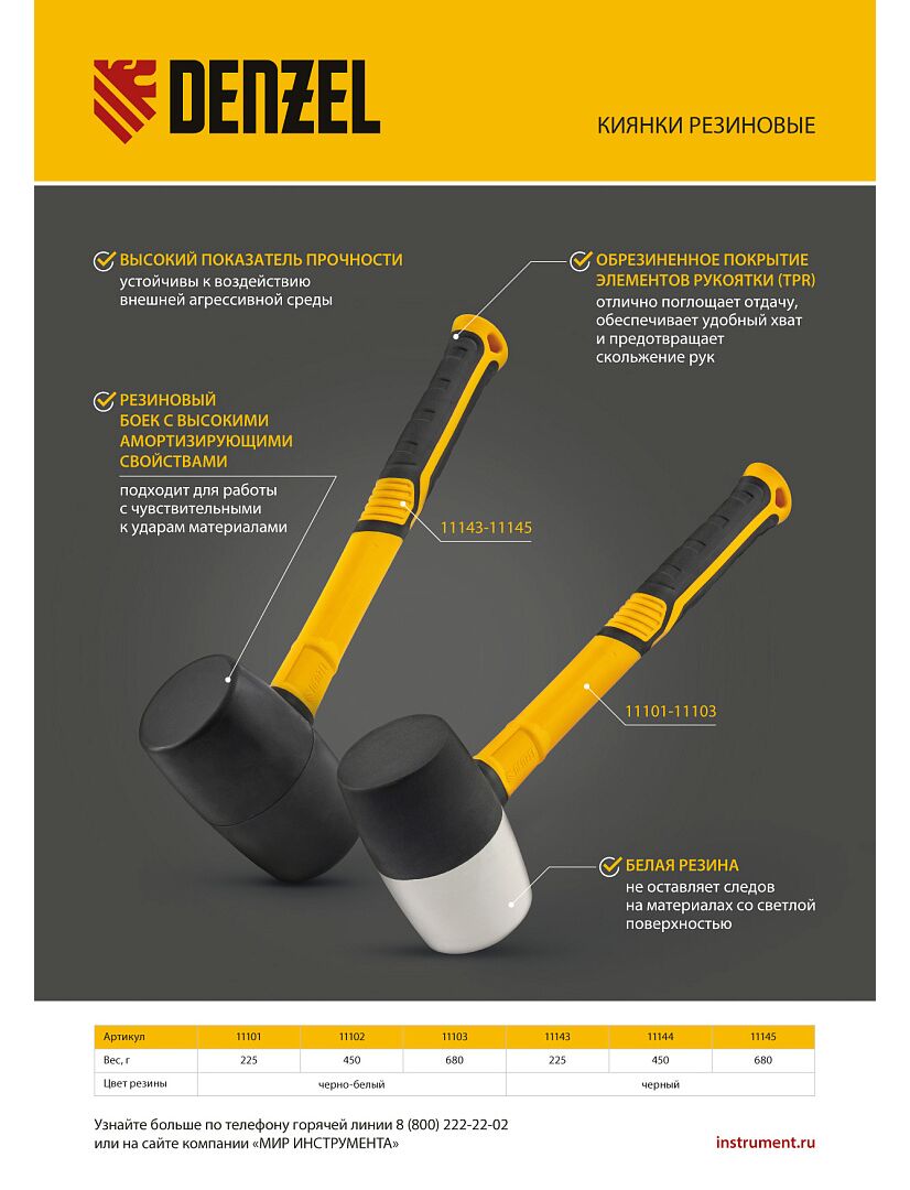 Киянка резиновая 225 г черная резина фибергласовая рукоятка c TPR покрытием DENZEL 11143