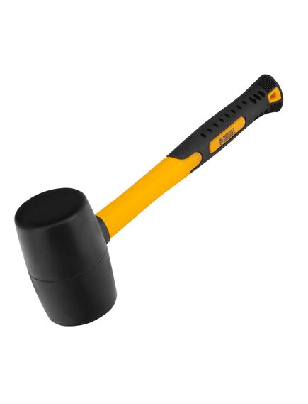 Резиновая киянка Denzel из черной резины с фибергласовой рукояткой,16 oz (450 г), применяется при проведении монтажных, сборочных и кузовных работ, укладке плитки. Резиновый боек обладает высокими амортизирующими свойствами. Рукоятка обладает высоким рабочим ресурсом, т.к. выполнена из фибергласа с обрезиненным покрытием, который обеспечивает надежный хват без проскальзывания. Киянка имеет высокий показатель прочности, устойчива к воздействию внешней агрессивной среды и хорошо поглащает вибрацию, поэтому подходит для профессионального применения.
