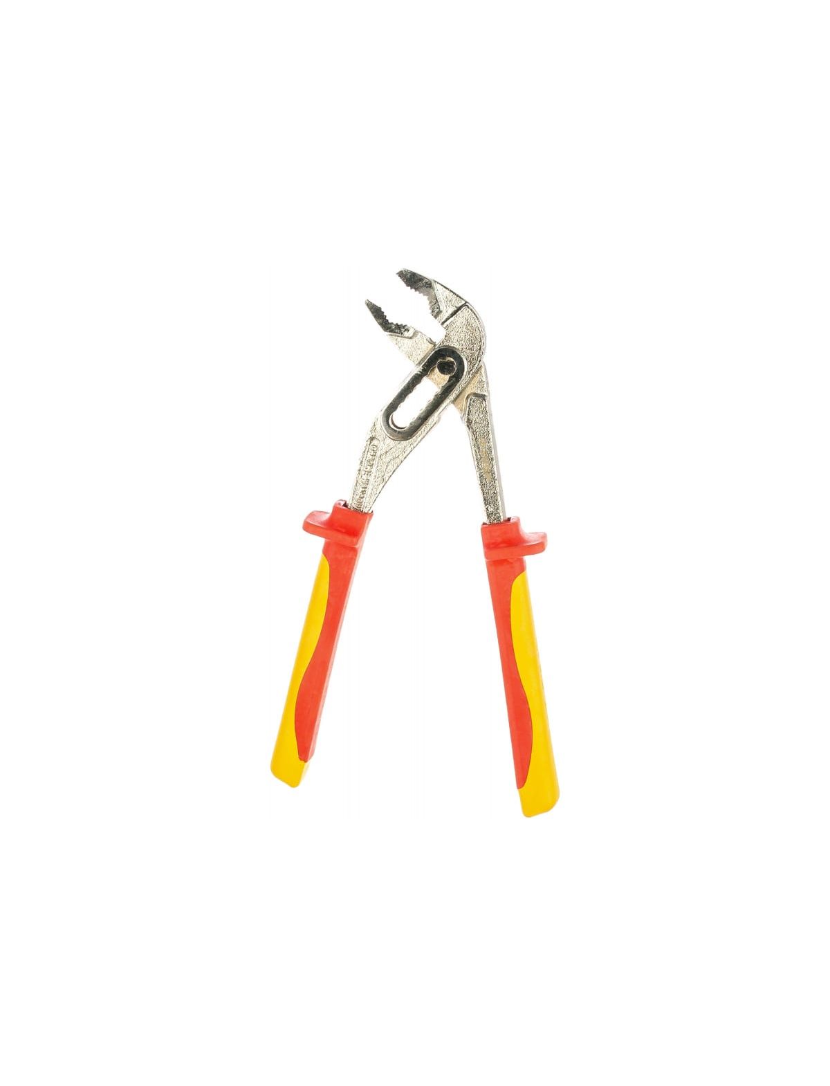 Диэлектрические переставные клещи до1000В, 250мм Зубр ЭКСПЕРТ ЭЛЕКТРОМОНТАЖНИК 22145-10-25 предназначены для эксплуатации в сфере промышленности и энергетики для выполнения высоковольтных элеткромонтажных работ. Инструмент подвержен индивидуальной проверке на пробу 1000В. Он полностью выполнен из высококачественной инструментальной стали С55. Поверхность губок имеет защитное хром-никелевое покрытие. Рабочая часть дополнительно закалена токами высокой частоты. Такие качества значительно продлевают срок службы инструмента при высоких нагрузках и агрессивных условиях окружающей среды. Рукоятки клещей имеют двойную изоляцию и специальную форму с защитными выступами для ладони. Изделие сертифицировано по ГОСТ 11516-94.
