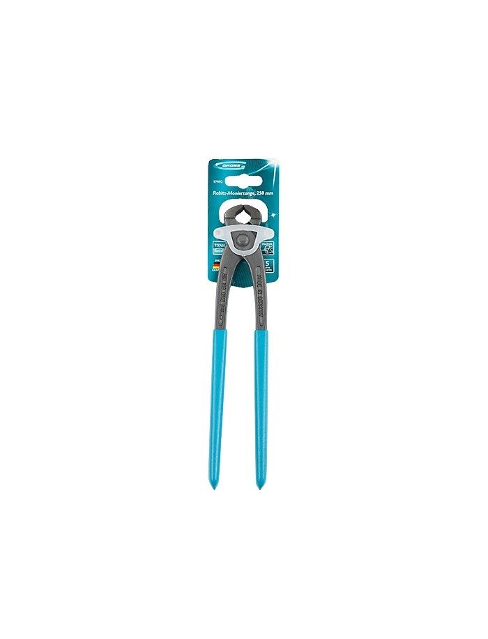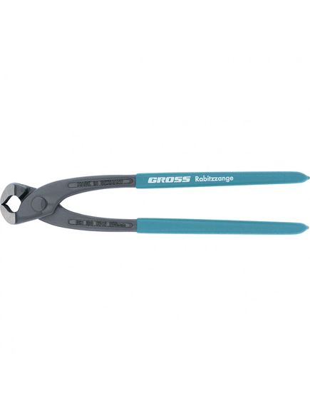 Торцевые клещи GROSS 250 мм 17992 позволяют извлекать вбитые гвозди, перекусывать стальную проволоку и т.д. Их рабочие части выполнены из конструкционной стали С60 и имеют антикоррозийное покрытие Titan finish. Для дополнительной прочности режущие кромки закалены индукционными токами до твердости 53 HRC. Благодаря обрезиненным рукояткам инструмент надежно лежит в руке.