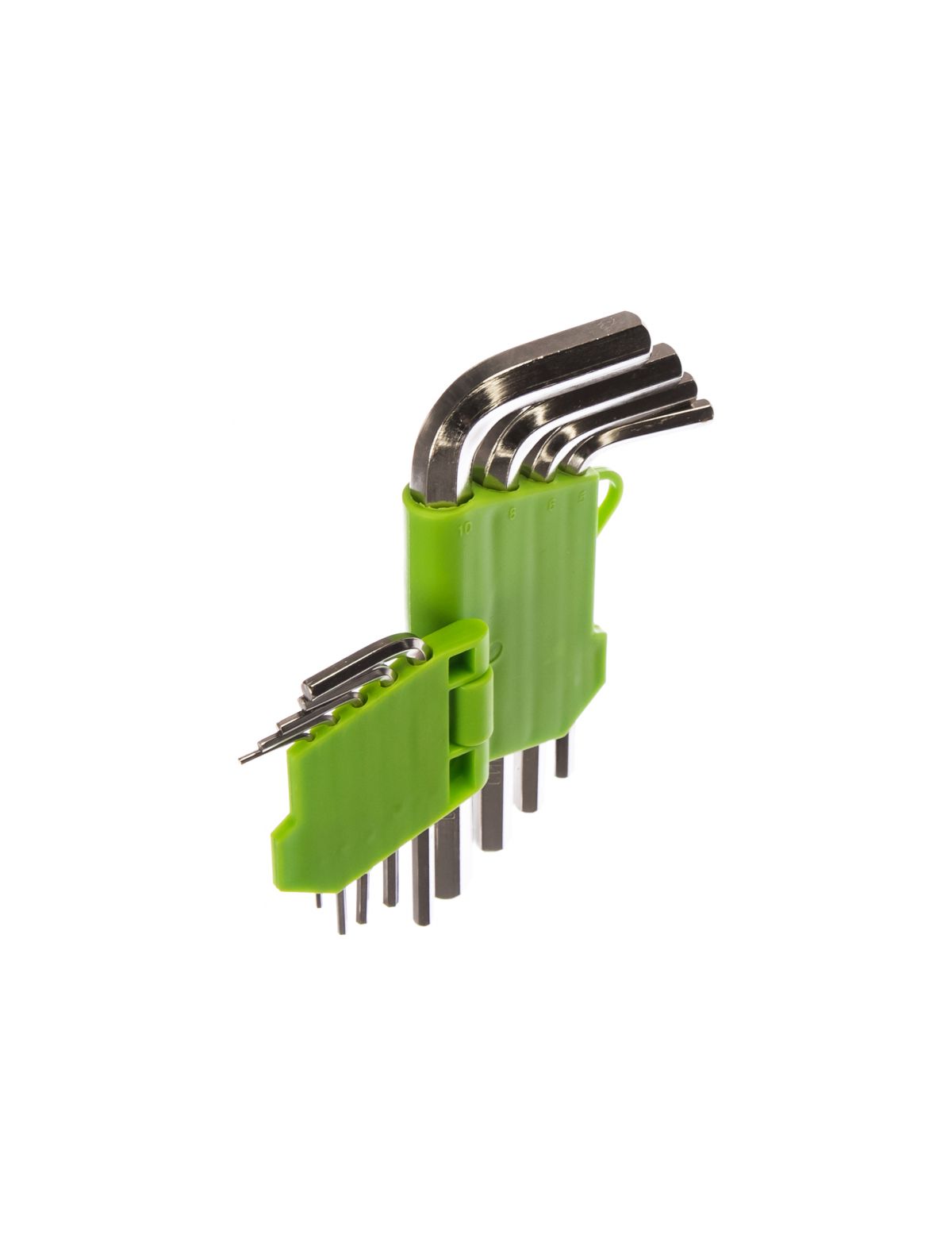 Набор коротких имбусовых ключей HEX 1.5-10 мм 9 шт СИБРТЕХ 12317 - комплект изогнутых, двусторонних ключей из прочной стали марки 45Х твердостью 45 HRС. Никелевое покрытие предотвращает появление коррозии. Пластиковый зажим позволяет удобно хранить и транспортировать ключи в полной комплектации без риска утери мелких компонентов.