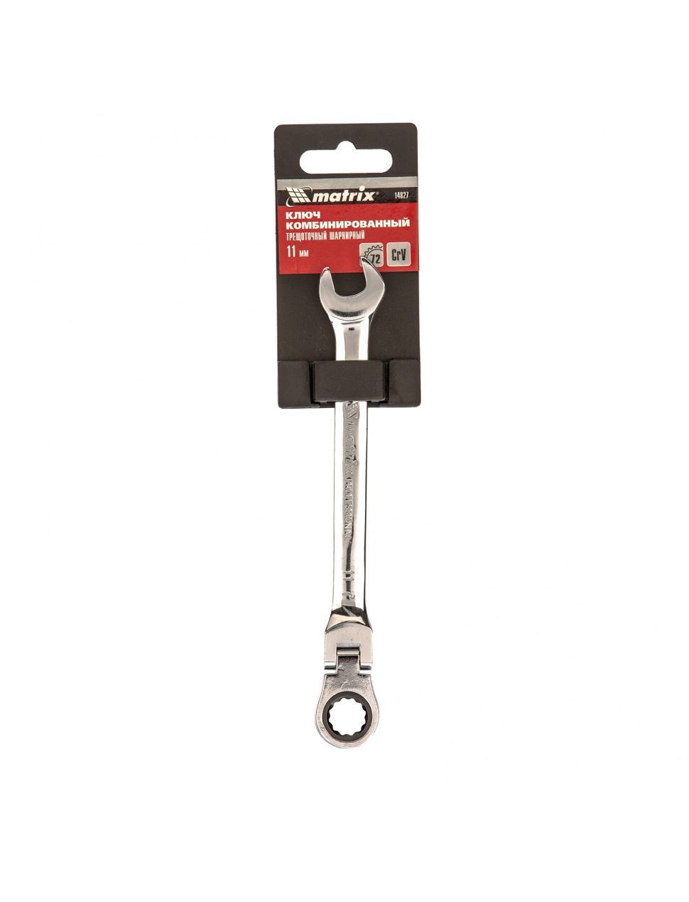 Ключ комбинированный трещоточный 11 мм шарнирный зеркальный хром MATRIX 14827