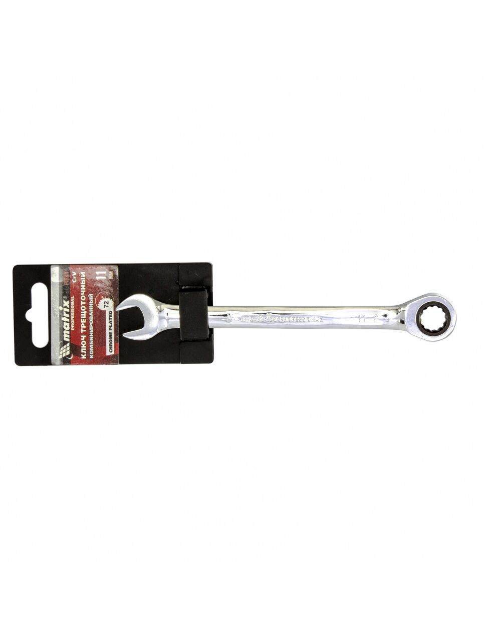 Ключ комбинированный трещоточный 11 мм зеркальный хром MATRIX 14804