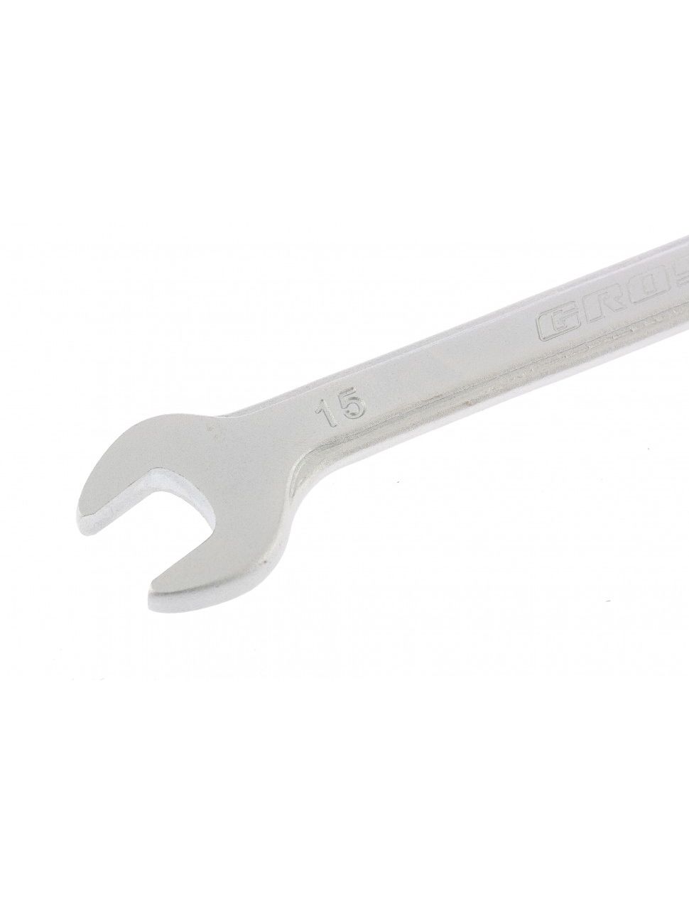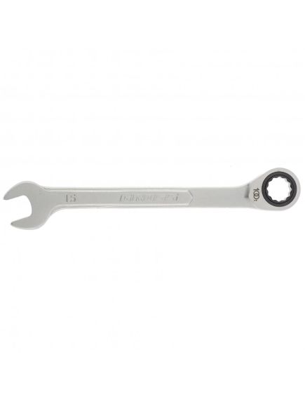 Ключ комбинированный трещоточный 15 мм GROSS 14853 используется для эффективной работы с резьбовыми соединениями и крепежом. Высокопрочная хромванадиевая сталь обеспечивает длительный срок службы инструмента. Ключ оснащен усиленной рожковой головкой и накидной головкой с трещоткой, имеющей 100 зубьев, что существенно упрощает работу в местах с ограниченной доступностью. Шаг храпового механизма составляет 3 градуса.