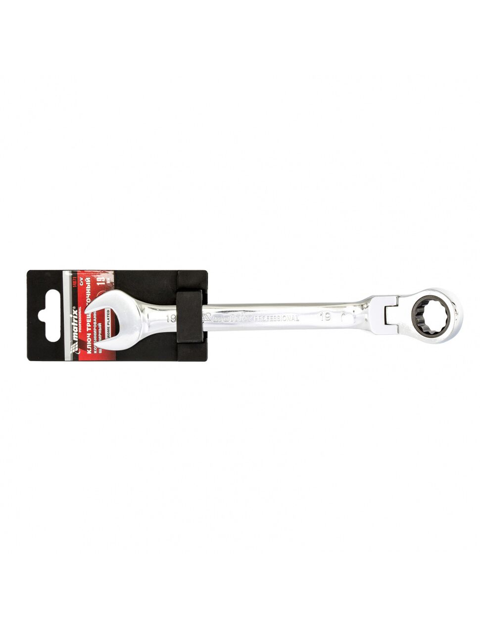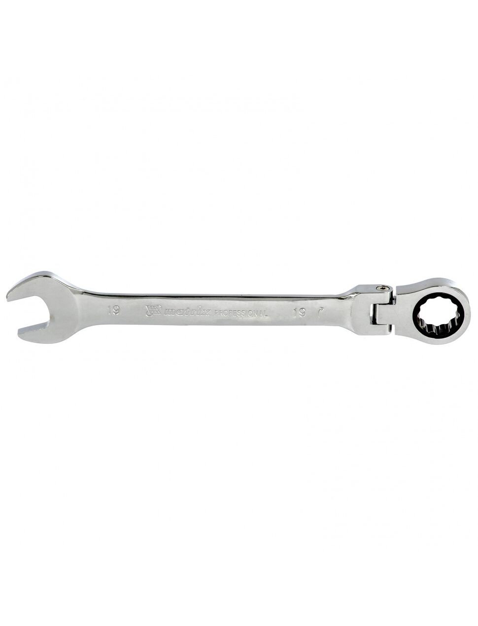 Ключ комбинированный трещоточный 19 мм шарнирный зеркальный хром MATRIX 14871