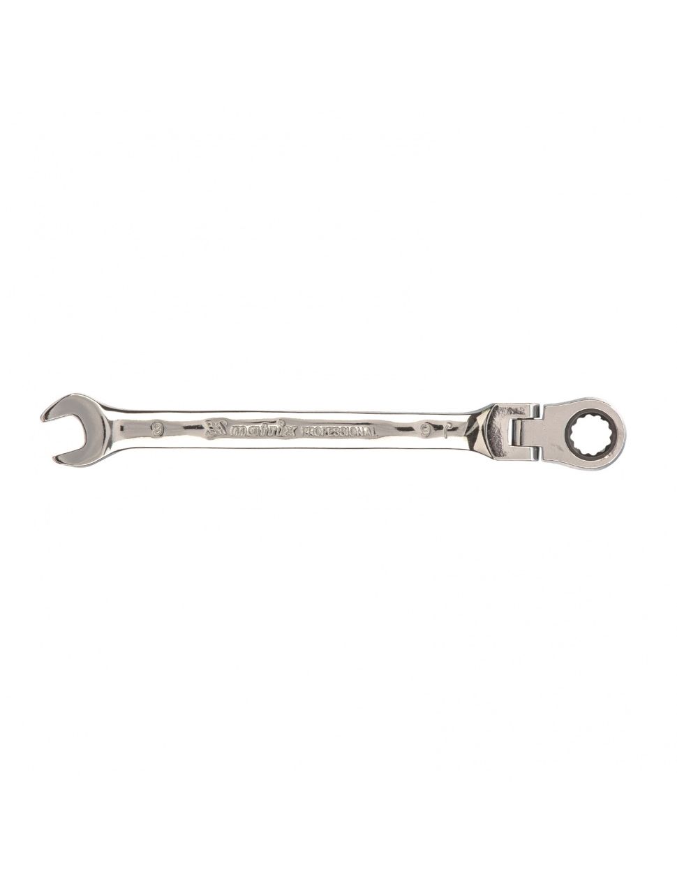 Ключ комбинированный трещоточный 9 мм шарнирный зеркальный хром MATRIX 14826