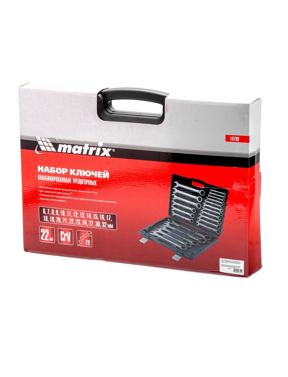 Набор комбинированных трещоточных ключей Matrix 14799, 22 шт., пригодится мастерам и автолюбителям для монтажа/демонтажа болтов и гаек. Храповый механизм с 72 зубьями облегчает закручивание или откручивание крепежей и обеспечивает возможность работы в труднодоступных местах. В наборе представлены 22 ключа основных типоразмеров для работы с различными болтами и гайками.