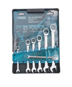 Набор комбинированных ключей 7 шт GROSS 14891 - комплект из семи инструментов для раскручивания и закручивания болтов и гаек. Каждый ключ оснащен храповым механизмом и шарниром для возможности работы в труднодоступных местах. Размеры ключей 8-19 мм. Благодаря тому, что они изготавливаются из...