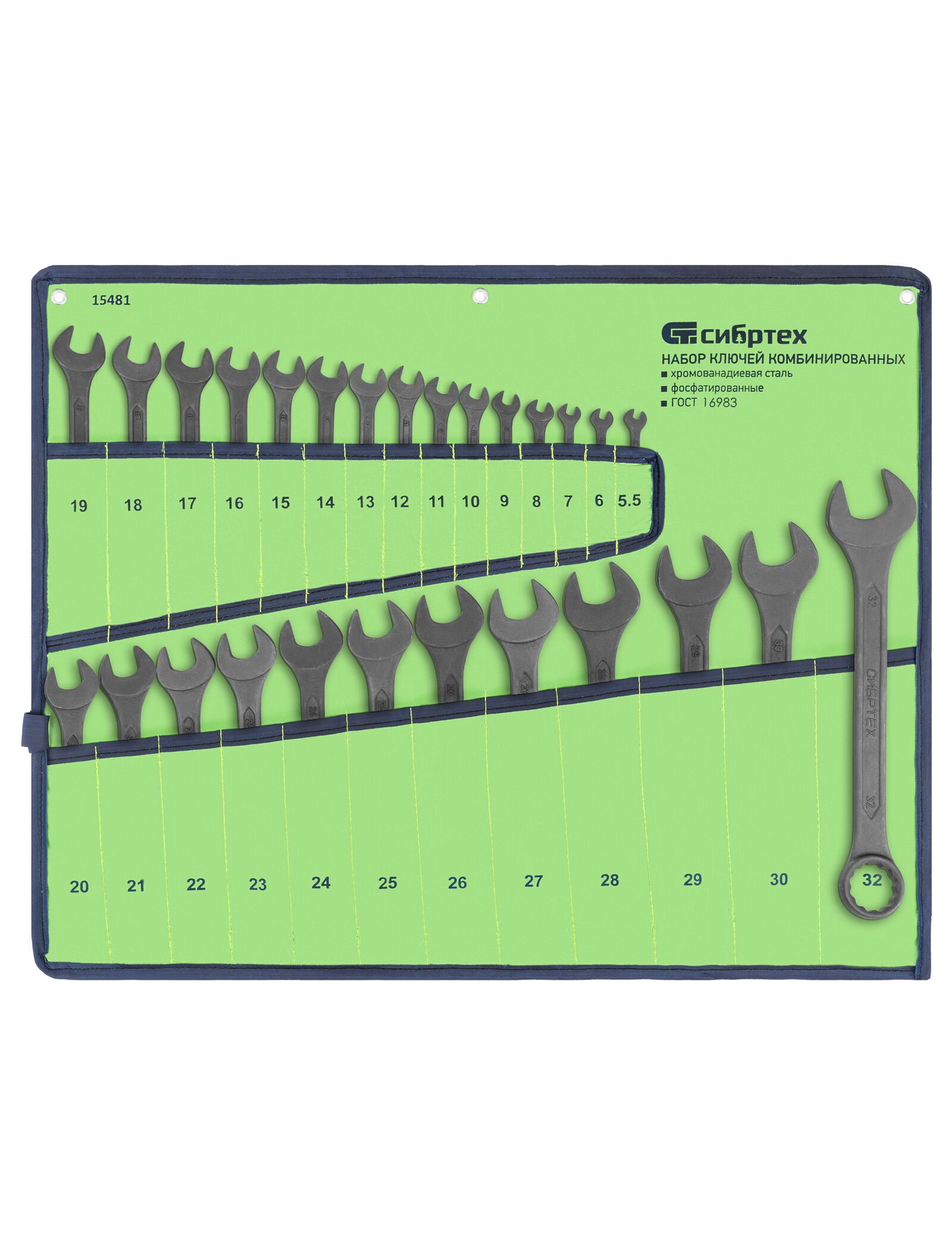 Набор ключей комбинированных 5,5 - 32 мм 27 шт фосфатированные СИБРТЕХ 15481