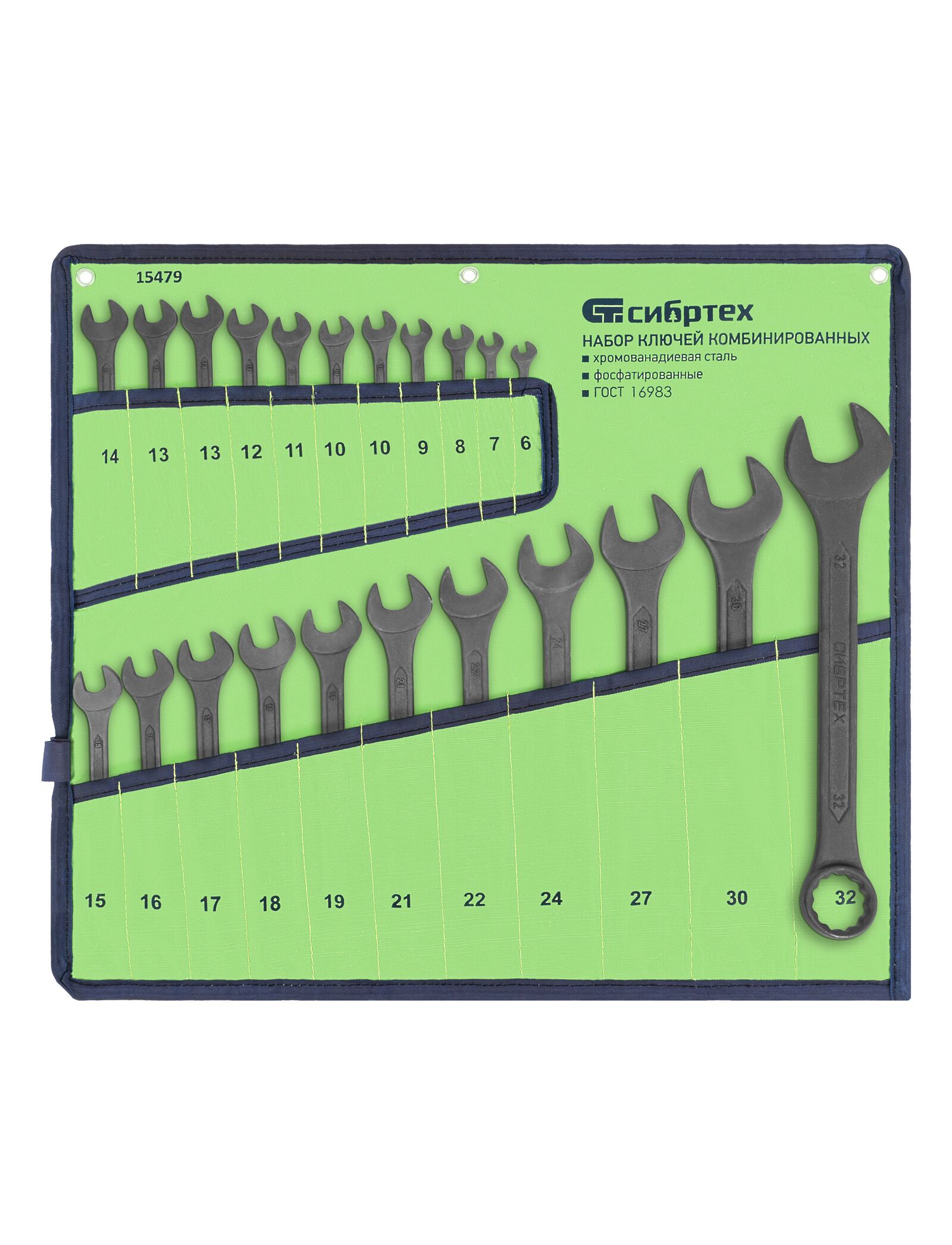 Набор ключей комбинированных 6 - 32 мм 22 шт фосфатированные СИБРТЕХ 15479