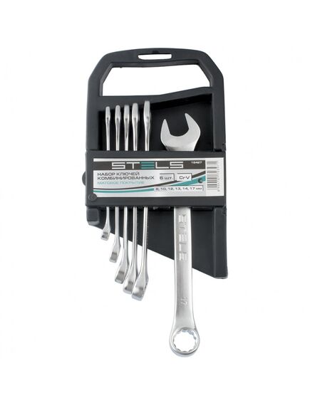 Набор комбинированных ключей 8-17 мм 6 шт матовый хром STELS 15427 - универсальный комплект ручных инструментов, имеющих двустороннее применение. Представленный комплект станет надежным помощником для использования как в бытовых, так и в профессиональных условиях.
