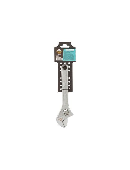 Ключ разводной 200 мм изготовлен из хромованадиевой стали, губки закалены токами высокой частоты. Встроенный в тело ключа червячно-винтовой механизм защищен от коррозии. Усиленная конструкция позволяет работать с повышенными нагрузками. Головка ключа имеет мерную шкалу для определения размера деталей.