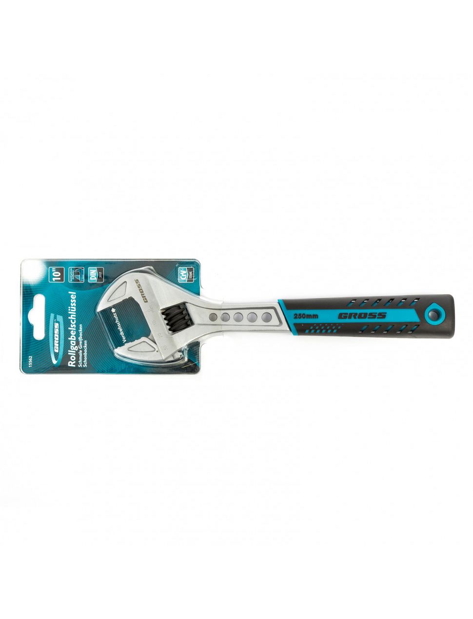 Разводной ключ GROSS 250 мм 15562 выполнен из хромованадиевой стали, которая обеспечивает прочность и долгий срок службы. Он предназначен для выполнения работ с широким диапазоном размерности крепежа. Благодаря специальной форме губок ключ исключает проскальзывание и гарантирует усиленный захват. Рукоятка из двухкомпонентного материала удобно лежит в руке, позволяя работать с комфортом.