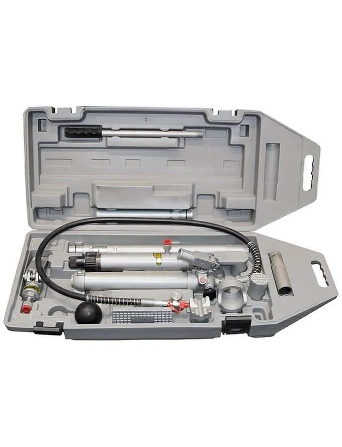 Гидравлическая растяжка в пластиковом кейсе на колесах (10 т, 14 предметов, 9 сменных насадок) MATRIX 513455 используется для ремонта кузова автомобиля. Весь набор размещается в кейсе, что обеспечивает удобное хранение и легкое перемещение инструментов. Есть возможность приобретать новые составляющие для комплекта дополнительно.