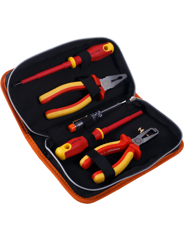 Набор для электромонажных работ Кратон DE-02/05 2 12 16 002 2 12 16 002 подойдет для проведения работ с крепежом или проводами, которые находятся под напряжением до 1000 В. Рабочие части выполнены из высококачественной инструментальной стали. Рукоятки с диэлектрическим покрытием выполнены из двухкомпонентного материала. Пенал облегчает хранение и транспортировку.