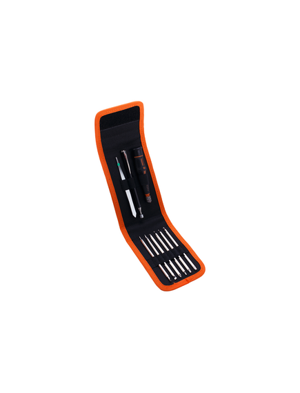 Набор для точных работ Кратон MN-03/09 21217003 используется для точных работ с крепежом небольшого размера. Преимущество набора заключается в оригинальной компоновке: отверточная рукоятка комплектуется не битами, а стержнями. Это увеличивает возможности набора и позволяет проводить работы любой сложности без дополнительного оборудования. Изделие поставляется в удобном чехле, который закрывается на кнопку. Все элементы набора располагаются на индивидуальных позициях.