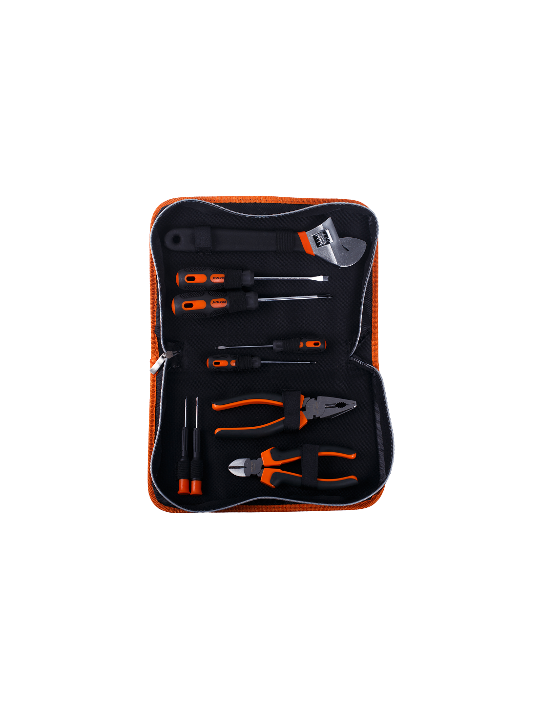Набор домашнего мастера Кратон HMS-01/09 2 12 14 001 подойдет для проведения множества бытовых работ. В комплект входят отвертки для работы с крепежом и часовые отвертки, для ремонта часов, мелкой электроники или очков. Пассатижи и бокорезы служат для перекусывания и удержания проводов или проволоки. Предусмотрен удобный для хранения пенал.