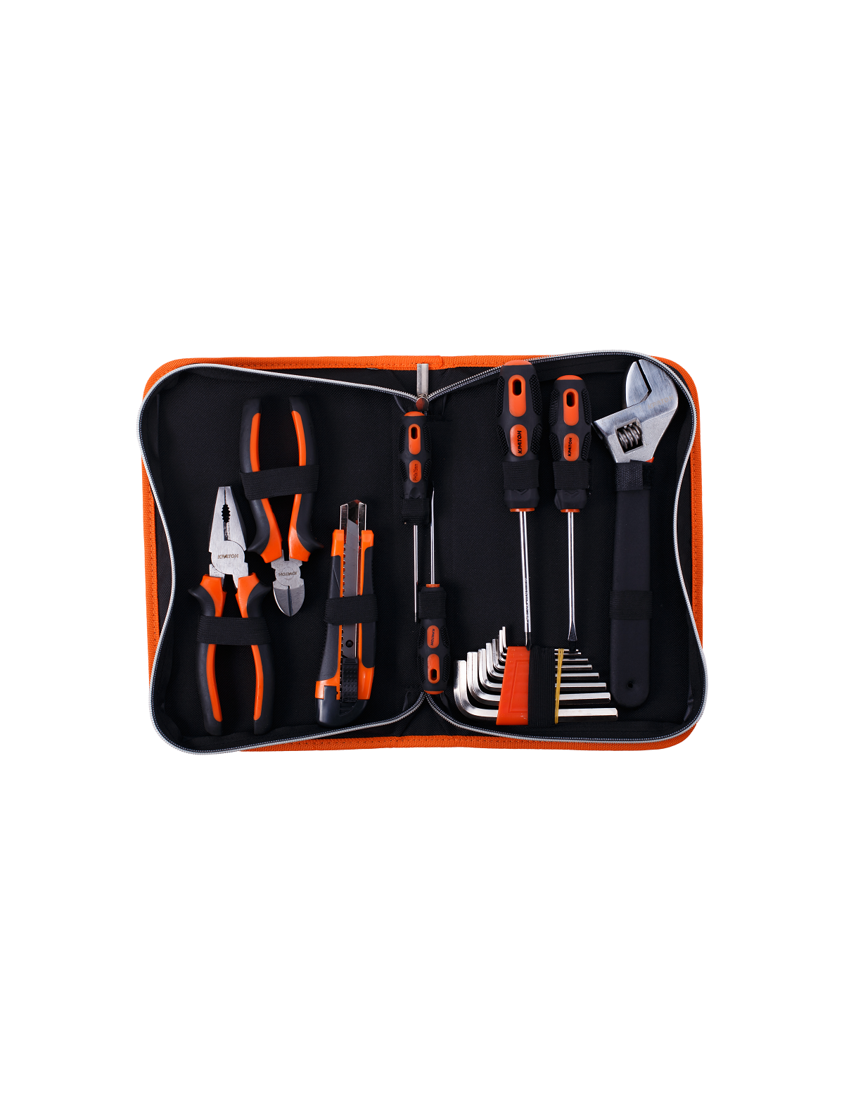 Набор домашнего мастера Кратон HMS-06/16 2 12 14 006 предназначается для ремонта сантехники, электрики и других видов работ. Все предметы комплекта компактно укладываются в сумку, что позволяет брать его с собой на дачу или в гараж.