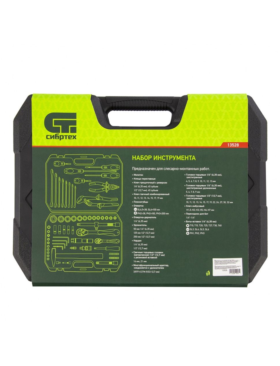 Набор инструментов 1/2" 1/4" 76 предметов CrV пластиковый кейс СИБРТЕХ 13528