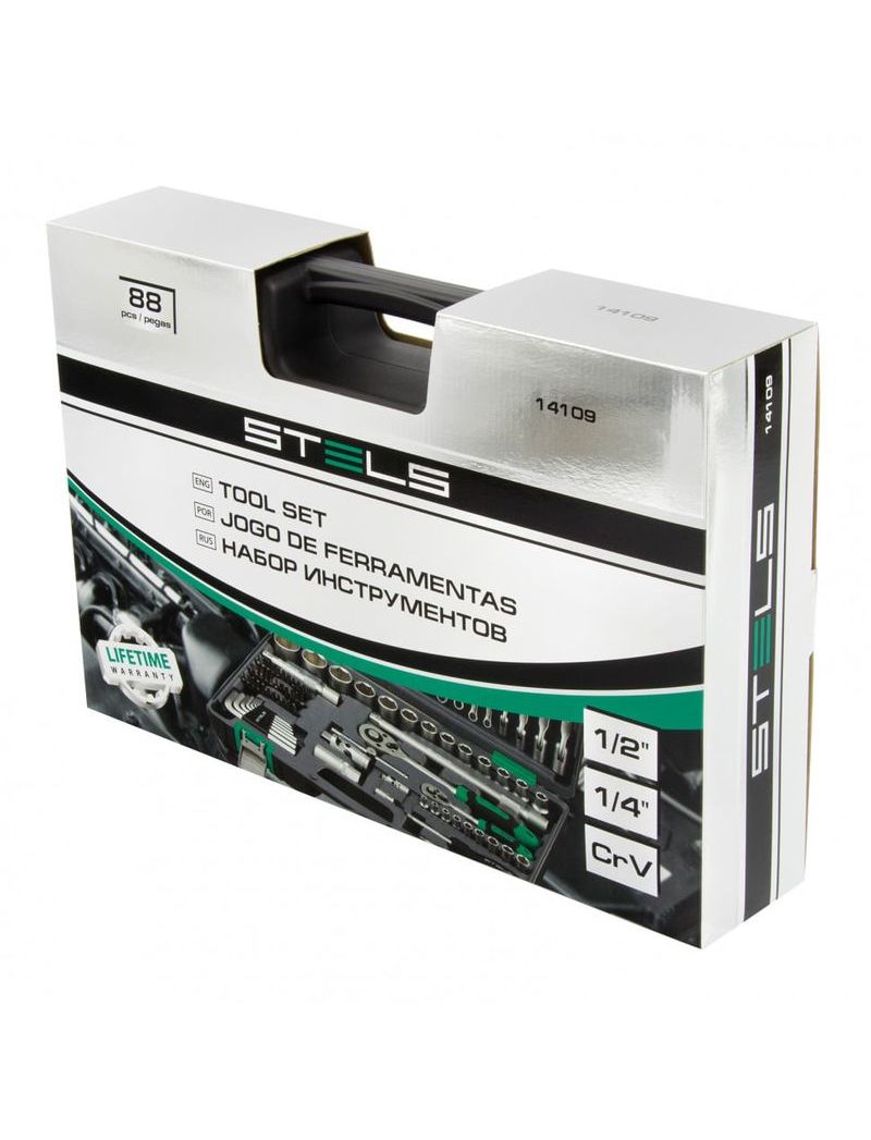 Набор инструментов STELS 88 предметов 14109 поставляется в кейсе, компактном, удобном и надежном приспособлении для хранения. Комплект состоит из 88 предметов, которые используются для обслуживания и ремонта автомобиля. Инструменты изготовлены из хромованадиевой стали, легкого, но при этом исключительно твердого материала. Двухкомпонентные рукоятки обеспечивают надежность удержания.