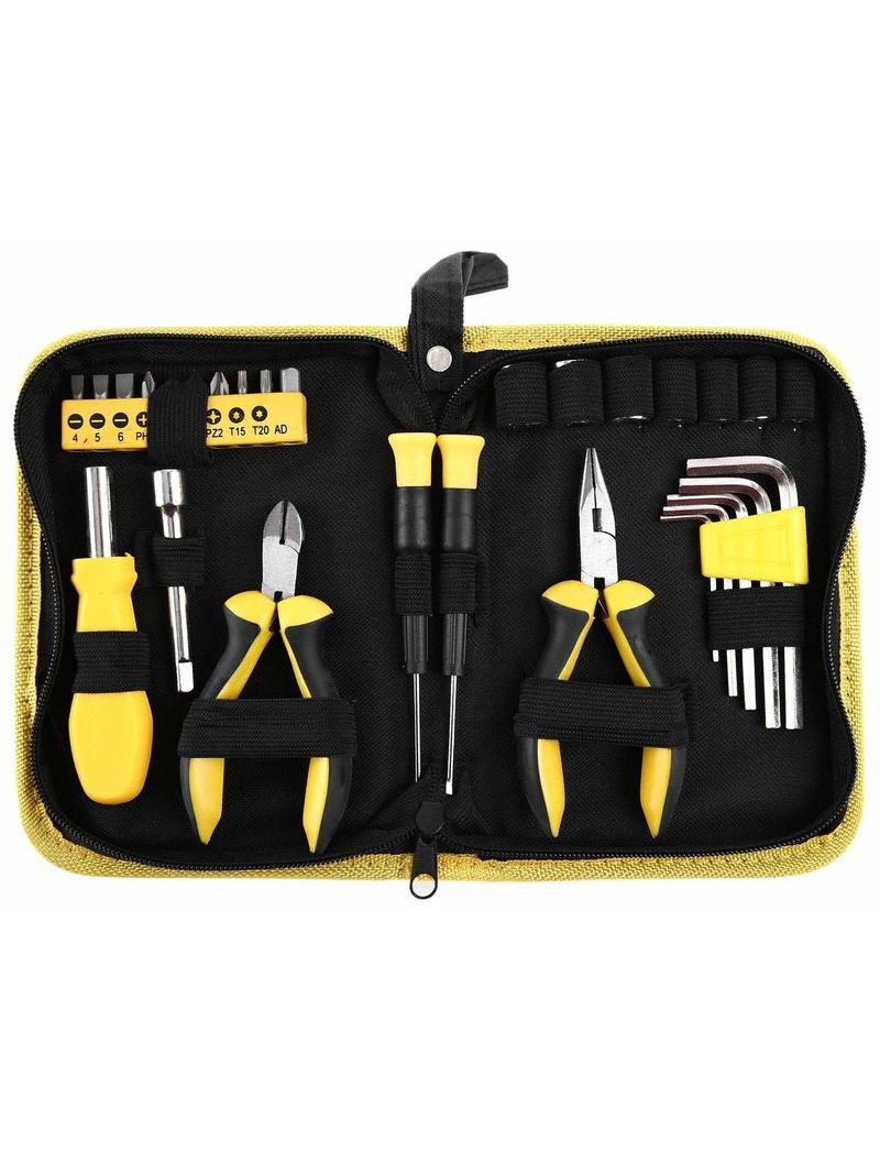 Набор инструмента FIT 65137 состоит из 29 предметов - отверток, бит, ключей HEX, пассатижей, адаптера-удлинителя, головок. Предназначен для проведения электромонтажных работ. Все составляющие набора изготовлены из инструментальной стали, поэтому прослужат долго. Комплект поставляется в прочной нейлоновой сумке, что упрощает хранение и транспортировку инструментов.