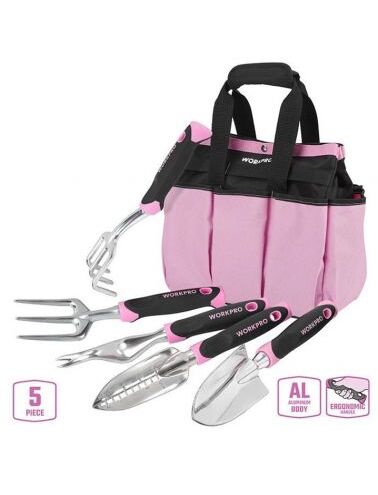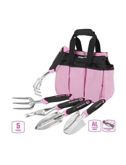 Набор садовых инструментов в сумке 5 предметов розовый WORKPRO WP206804