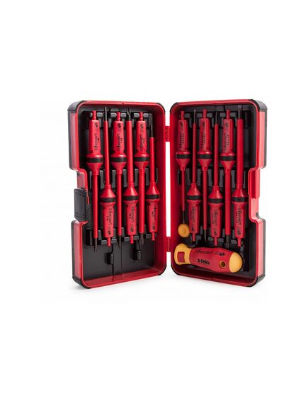 Диэлектрическая отвертка Smart с набором насадок 12 шт в кейсе Felo подойдет для электриков. С ее помощью можно проводить обслуживание находящихся под напряжением резьбовых соединений. Конструкция имеет вращающуюся головку и эргономичную рукоятку из противоскользящего материала, благодаря чему достигается эффективность работы при небольших усилиях затягивания. Наличие на рукоятке специальной кнопки позволяет менять насадки быстро и безопасно. Комплект поставляется в прочном кейсе для удобства его транспортировки и хранения.