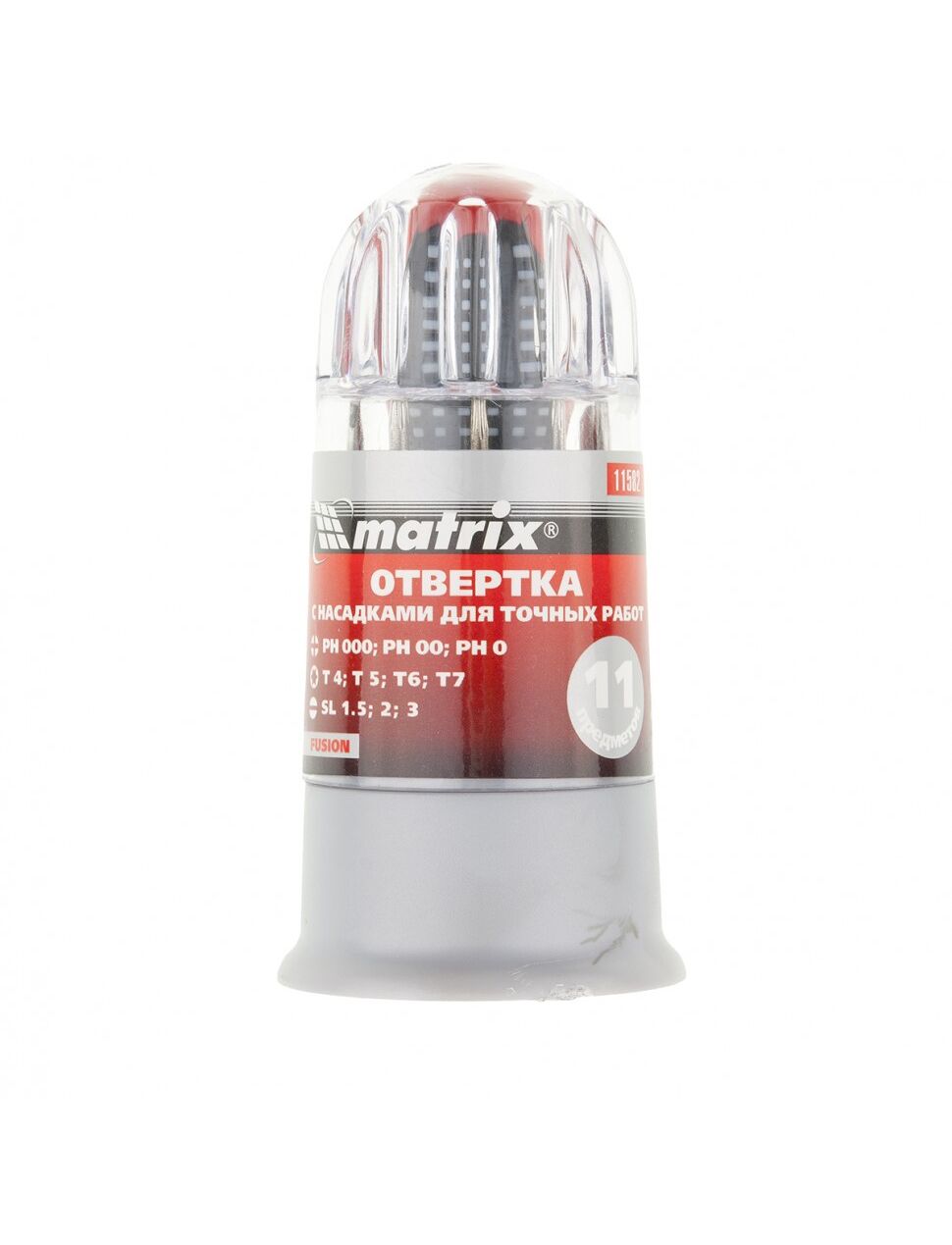 Отвертка для точных работ 11 предметов Fusion в пластиковом пенале MATRIX 11582
