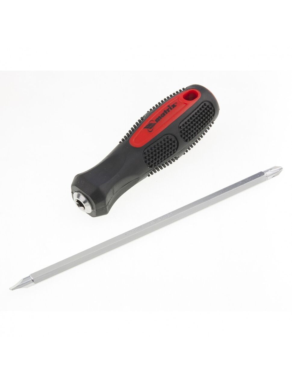 Комбинированная отвертка SL6.0, PH2 мм MATRIX 12290 с профилями прямой шлиц (SL – 6 мм) и Phillips (PH – №2) изготовлена из высокопрочной хромованадиевой стали. Рукоятка имеет двухслойное прорезиненное покрытие, не скользящее при работе.
