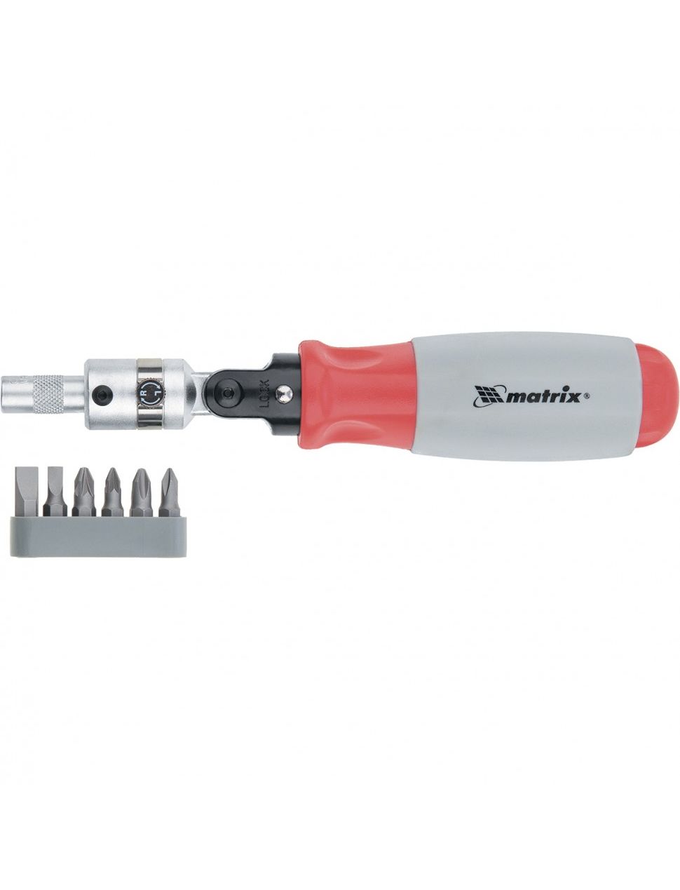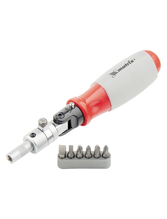 Отвертка реверсивная поворотная головка набор бит 6 шт MATRIX 11548