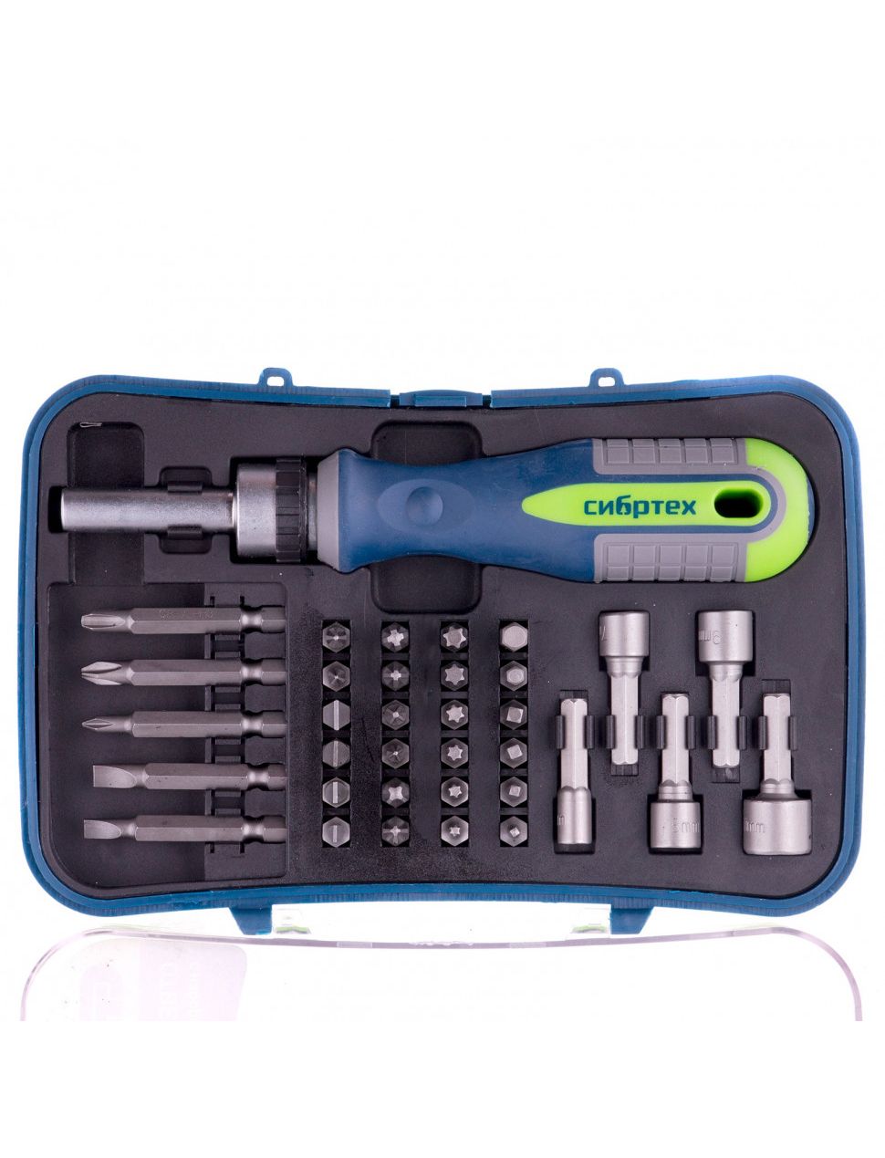 Отвертка реверсивная с набором бит 35 предметов СИБРТЕХ 13337