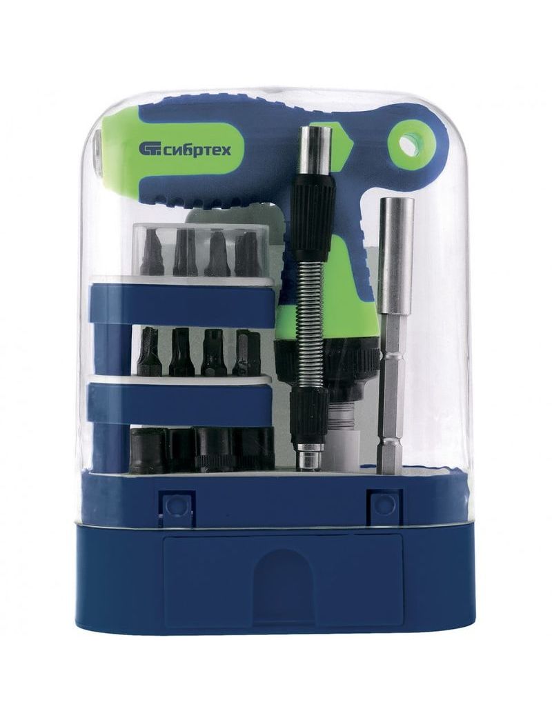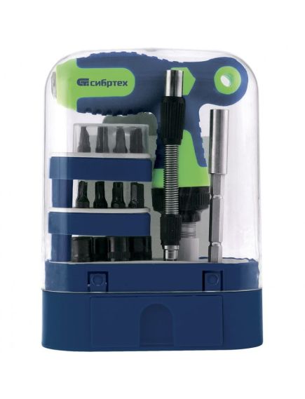 Отвертка Т-образная реверсивная с набором бит торцевых головок 33 предмета СИБРТЕХ 13382