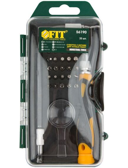 Отвертка с набором бит 33 предмета FIT 56190