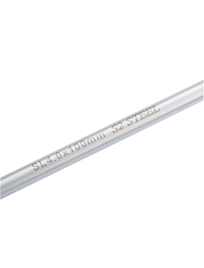 Отвертка GROSS SL4.0x100 мм 12105 предназначена для работы с резьбовыми соединениями, имеющими плоский шлиц. Максимальный крутящий момент затяжки достигает 5.5 Нм. Стержень изготовлен из прочной инструментальной стали S2 и имеет хромовое покрытие для защиты от коррозии. Благодаря насечкам на жале увеличивается трение между отверткой и шлицом крепежа, что препятствует его повреждению. Удобная форма трехкомпонентной рукоятки обеспечивает надежный хват.
