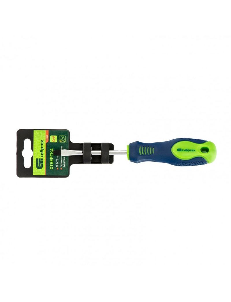 Отвертка SL5 х 75 мм 2-х компонентная рукоятка СИБРТЕХ 11865