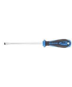 Отвертка GROSS SL8.0x200 мм 12123 предназначена для работы с резьбовыми соединениями, имеющими плоский шлиц. Максимальный крутящий момент затяжки достигает 11.5 Нм. Стержень изготовлен из прочной инструментальной стали S2 и имеет хромовое покрытие для защиты от коррозии. Благодаря насечкам на...