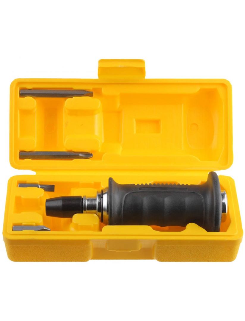 Ударно-поворотная отвертка с битами STAYER 25663-H4 применяется для монтажа и демонтажа резьбовых соединений. Рабочая насадка начинает двигаться благодаря ударному воздействию на тыльную часть ручки. Можно устанавливать направление вращения благодаря переключателю реверса. Рукоятка отвёртки имеет держатель для бит, что упрощает процесс работы - сменные биты всегда под рукой.