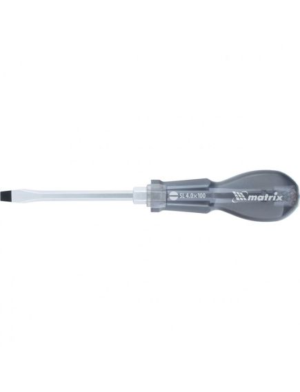 Отвертка ударная Matrix 19100 имеет цельный стержень, проходящий сквозь всю отвертку, а также стальной затыльник, который позволяет наносить удары молотком или киянкой при демонтаже застарелых, прикипевших или заржавевших винтовых соединений. Стержень имеет в сечении шестигранную форму и в месте соединения с рукояткой оснащен шестигранной гайкой, позволяющей с помощью гаечного ключа прикладывать к отвертке дополнительное усилие при демонтаже трудно извлекаемых крепежных элементов. Наконечник стержня намагничен.