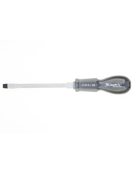Отвертка ударная Matrix 19103 имеет цельный стержень, проходящий сквозь всю отвертку, а также стальной затыльник, который позволяет наносить удары молотком или киянкой при демонтаже застарелых, прикипевших или заржавевших винтовых соединений. Стержень имеет в сечении шестигранную форму и в месте соединения с рукояткой оснащен шестигранной гайкой, позволяющей с помощью гаечного ключа прикладывать к отвертке дополнительное усилие при демонтаже трудно извлекаемых крепежных элементов. Наконечник стержня намагничен.