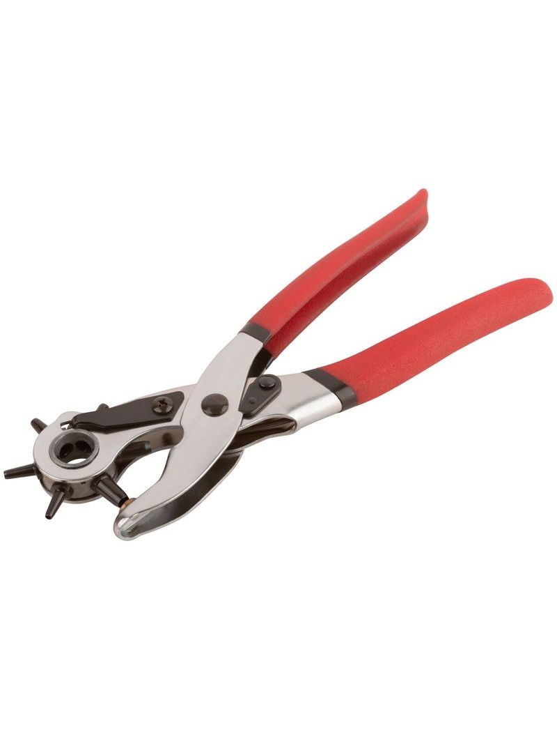 Дырокол-пробойник FIT 67425 обладает прочной стальной конструкцией. Удобные рукоятки оснащены пластиковыми накладками, что обеспечивает комфорт во время работы. Данный инструмент используется при отделке кожаных, текстильных и пластиковых изделий. Диаметры пробиваемых отверстий: 2-2,5-3-3,5-4-4,5 мм.