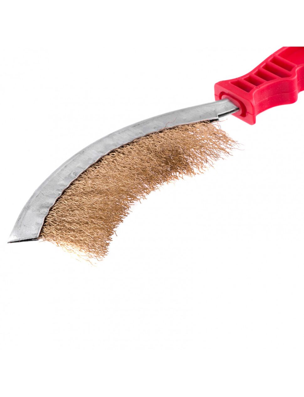 Металлическая изогнутая щетка MATRIX 74839 предназначена для очищения цилиндрических поверхностей. Пластиковая рукоять повторяет форму пальцев для комфортной работы. А ударопрочная пластмасса выдерживает большие нагрузки.