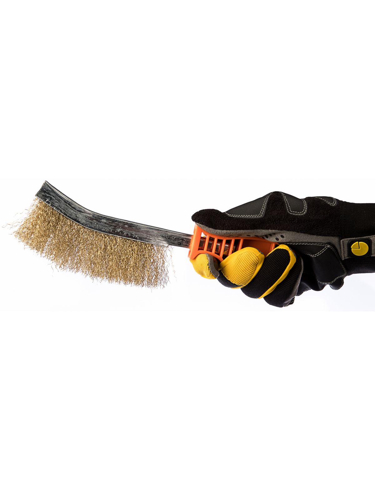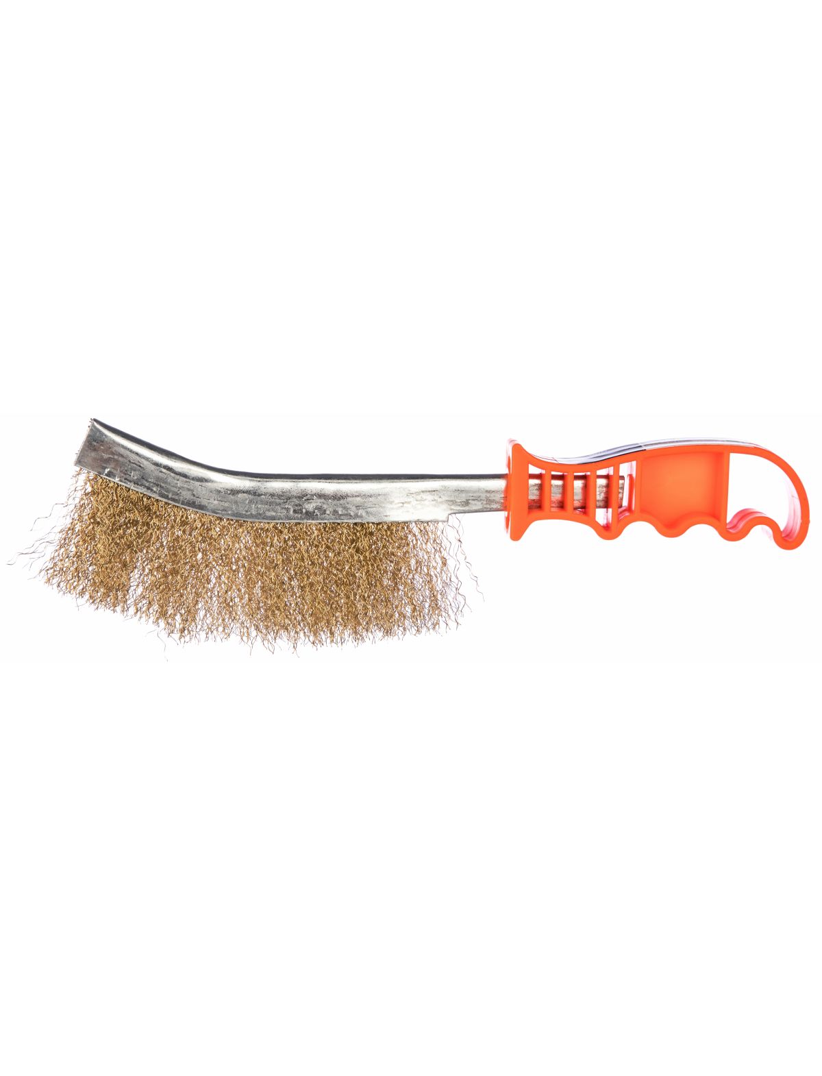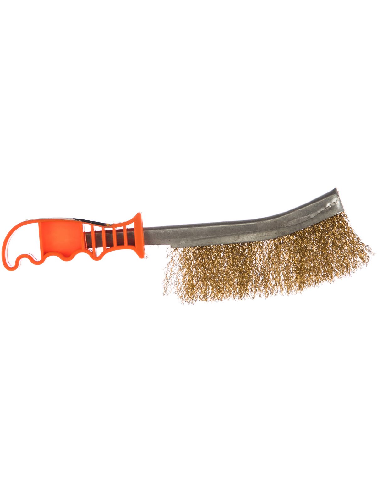 Металлическая щетка SPARTA 748505 представляет собой сочетание стальной щетины с латунным покрытием в металлическом корпусе и пластиковой рукоятки, выполненной по форме ладони. Данное изделие служит для зачистки металлических поверхностей в щадящем режиме.