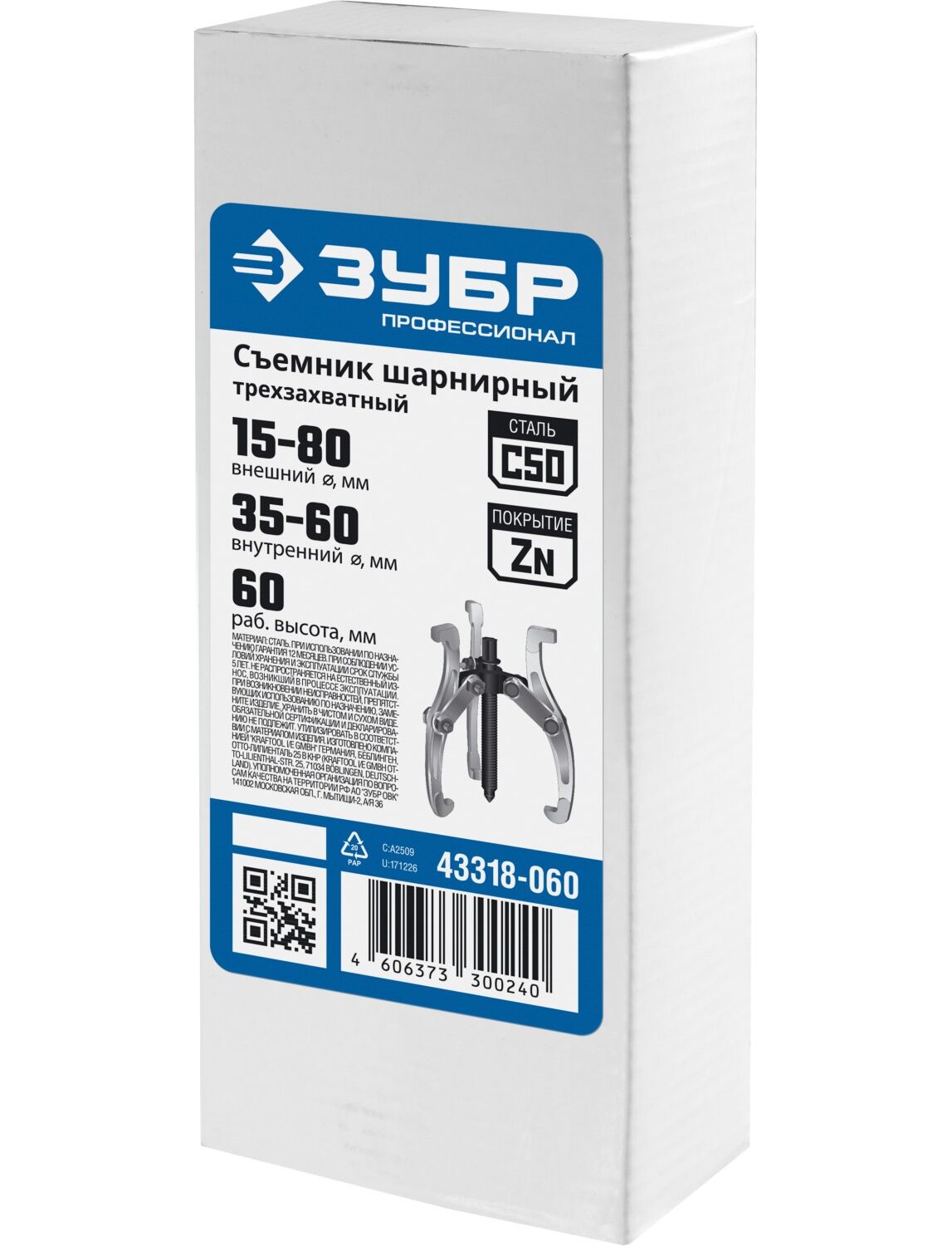 Съемник шарнирный 3-х захватный 60 мм ЗУБР 43318-060