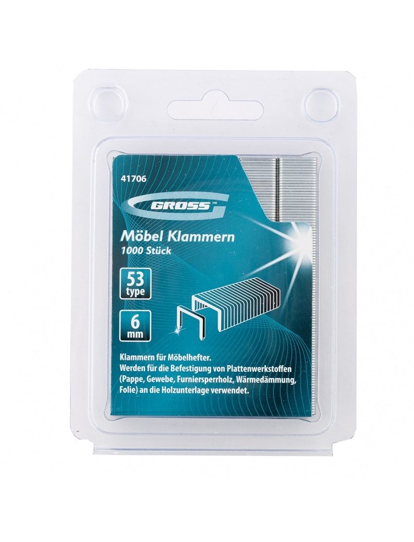 Скобы 6 мм для мебельного степлера усиленные тип 53 1000 шт GROSS 41706